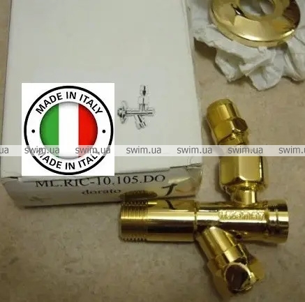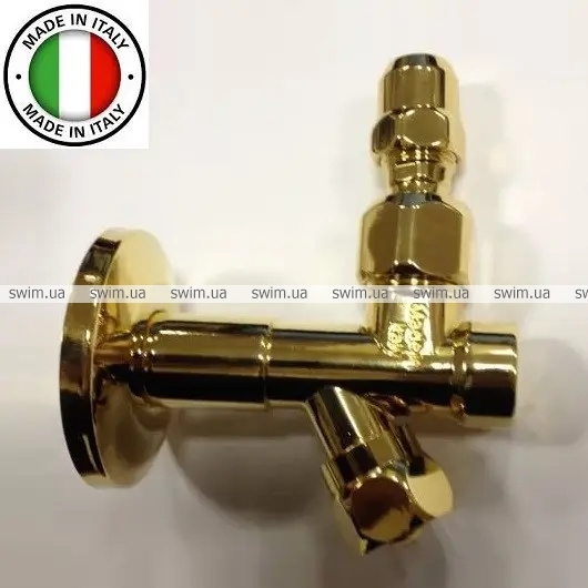 → Золотий кутовий запорний кран з фільтром 1/2*3/8 Bugnatese 19251